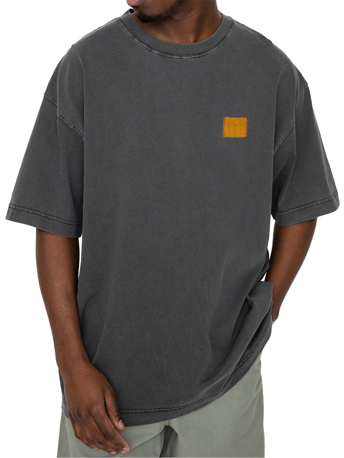 Men's Fashion Retro Corduroy Simple Embroidered Logo Pocket Casual Short-sleeved T-shirt