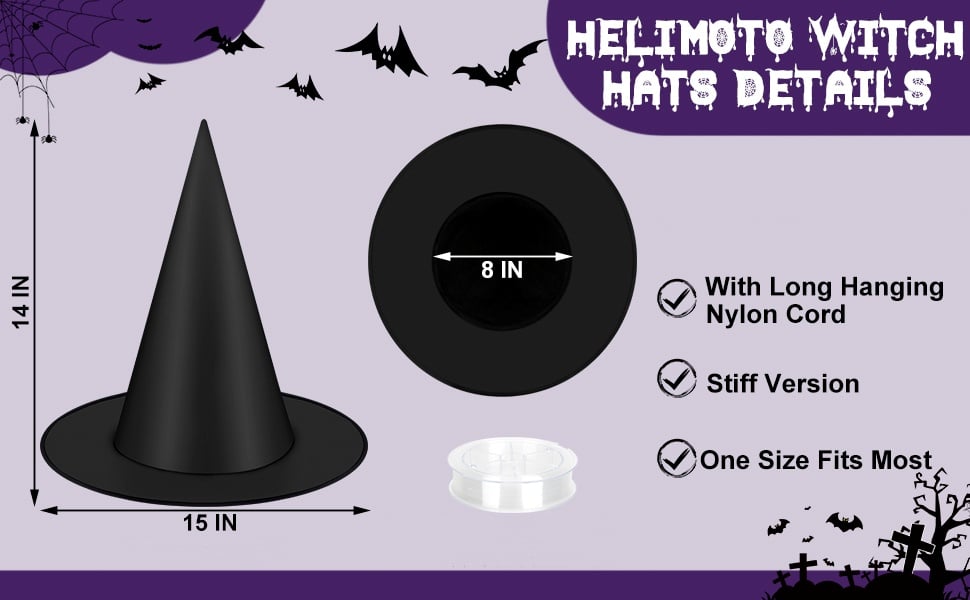 🏆Flash Sale⚡ 50K+ SOLD! Almost Gone-💥🧙‍♀️12 PCS Halloween Witch Hats with 104 FT Nylon Cord
