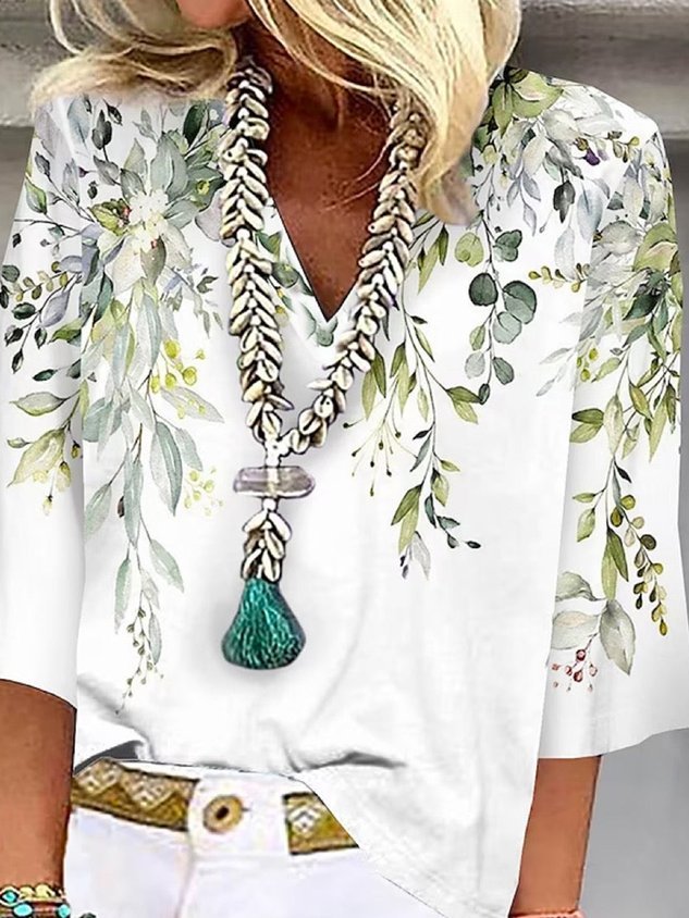 Casual Loose Floral V Neck Shirt