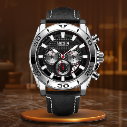 This leather strap quartz watch is the ultimate combination of performance and style. Designed for the modern man who desires both functionality and flair, this watch features water resistance, luminous dials and a rugged army design. Whether you're navigating through tough conditions or just heading to work, the accurate quartz movement ensures you're always on time. Plus, the built-in chronograph and calendar display add convenience, keeping you organized and ready for anything.