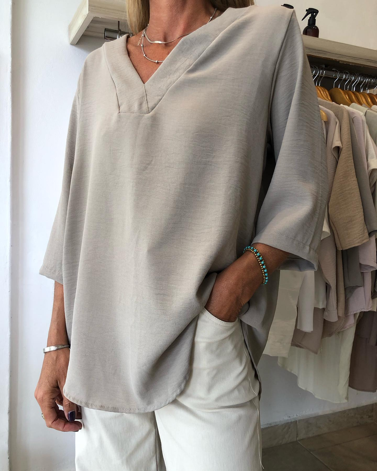 Solid Print Button Decor Long Sleeve Stylish Women Shirt