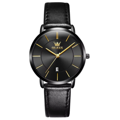 This Venture - 40mm watch with leather strap is the perfect companion for the modern man who appreciates both sophistication and practical convenience. With its ultra-thin quartz movement, it offers accurate timekeeping without added weight, and provides a slim and minimalist design that sits comfortably on the wrist. The vegan leather strap adds a touch of classic elegance, making it suitable for both formal occasions and casual outings. In addition, the automatic date display ensures that you keep track of your calendar without constant adjustment.