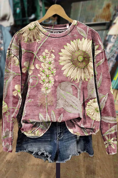 Women's Artistic Sunflower Pattern Crew Neck Sweatshirt